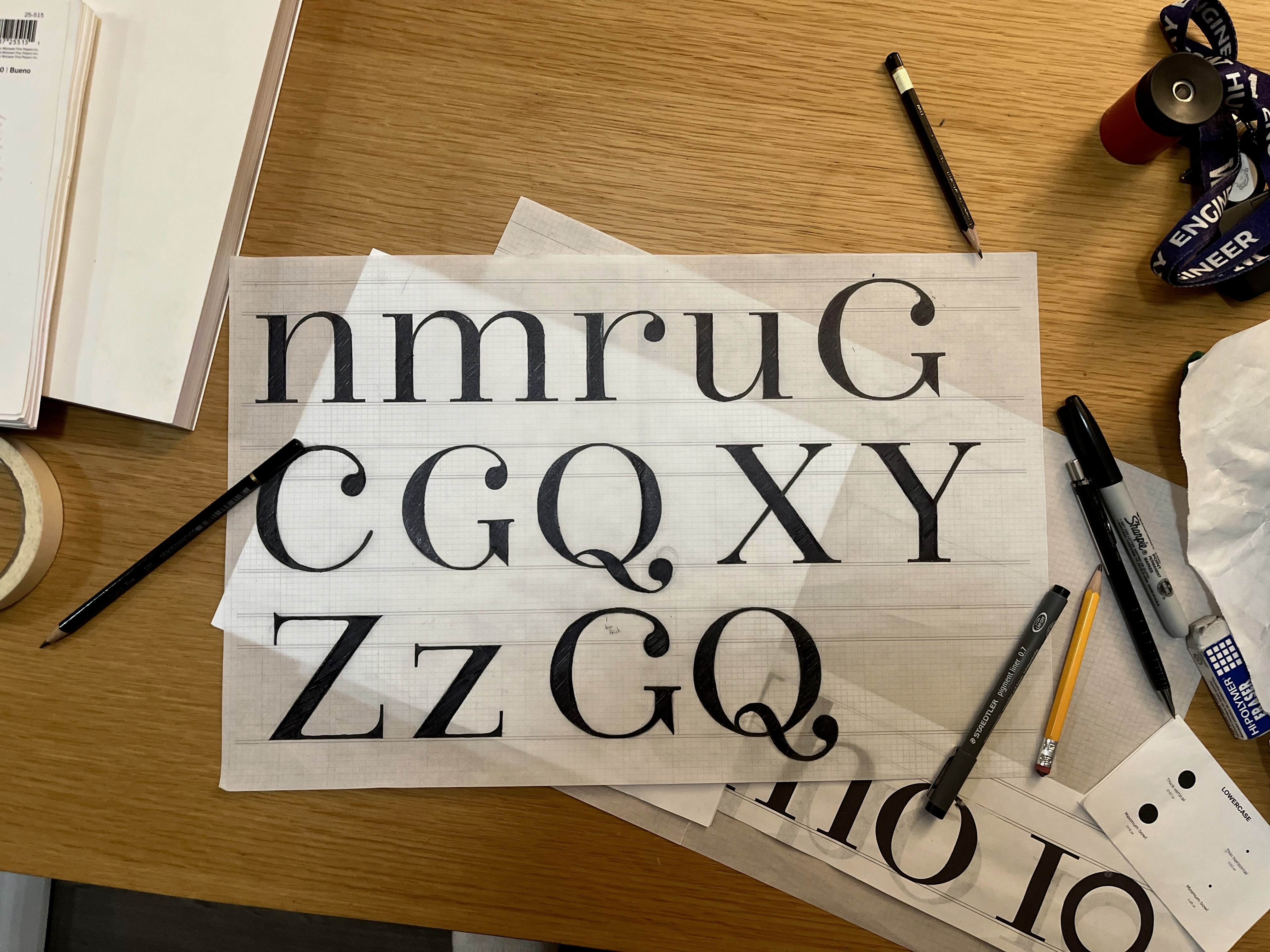 As someone whose journey with design has been tightly intertwined with the digital world, doing the majority of this work with pen and paper was a refreshing experience. I felt a connection and engagement with the design only possible when working with something tangible. Conversely, though, the ease with which our hand-drawn letters became a functional digital font was delightful and served to demonstrate the role technology can play in design.